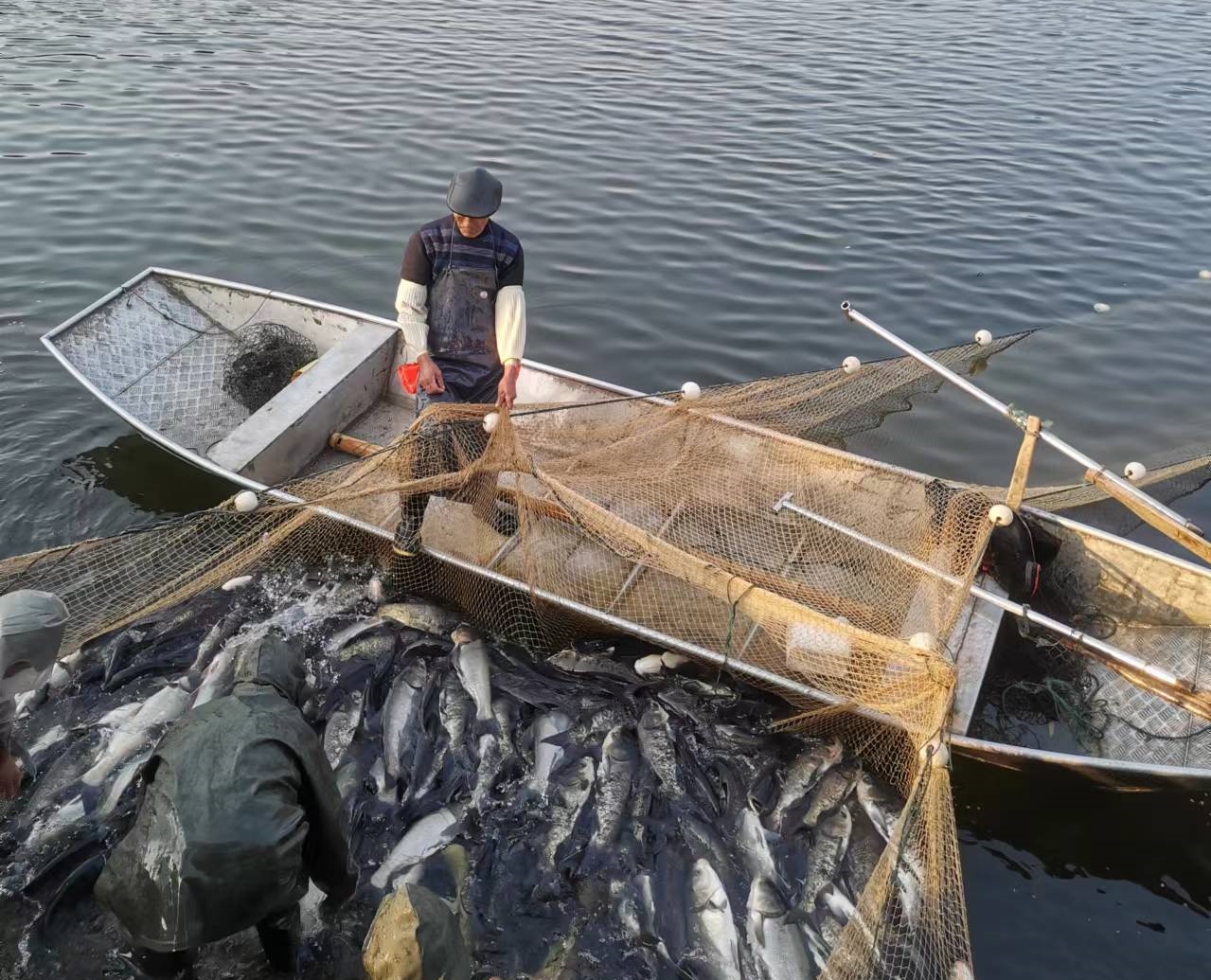 2月11日,水利電力公司在艾大橋水庫開展新年第一批捕魚工作。